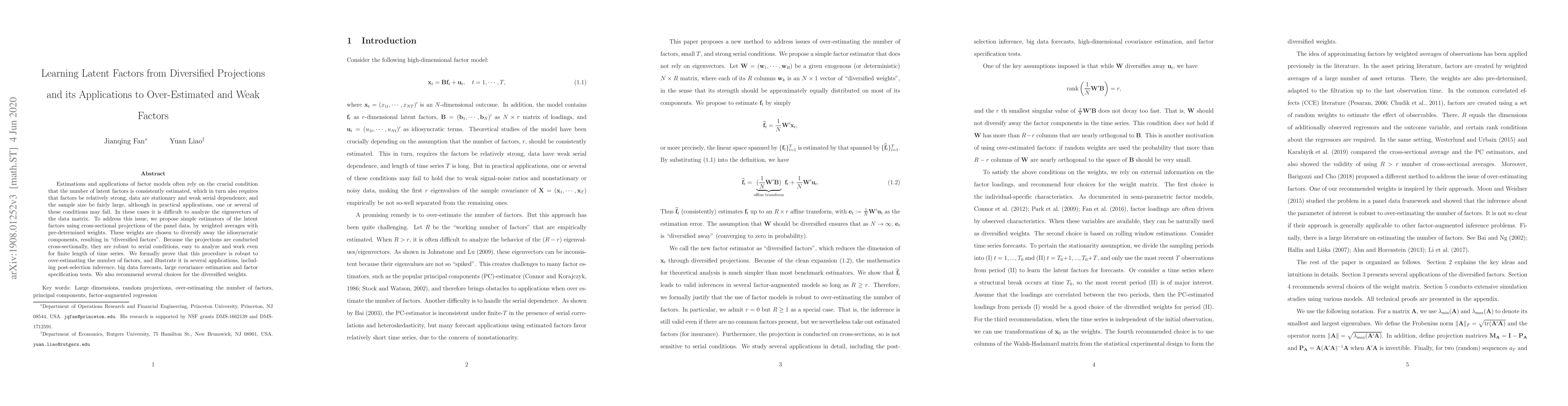 A new method for estimating latent factors in factor models is proposed, using cross-sectional projections to diversify away idiosyncratic components, enabling robust analysis even with weak data conditions.