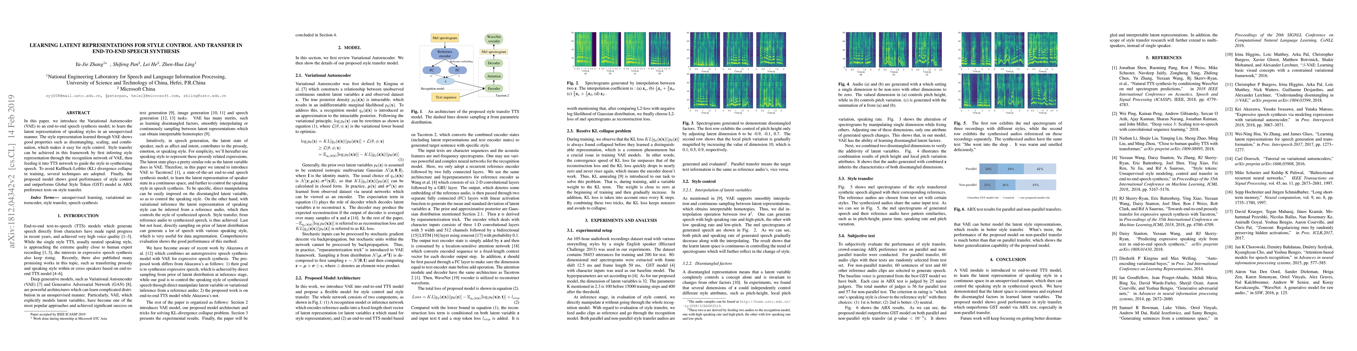 This paper employs a Variational Autoencoder (VAE) in an end-to-end speech synthesis model to learn latent representations of speaking styles unsupervised. The learned style representation allows for effective style control and transfer, outperforming the Global Style Token (GST) model in preference tests.