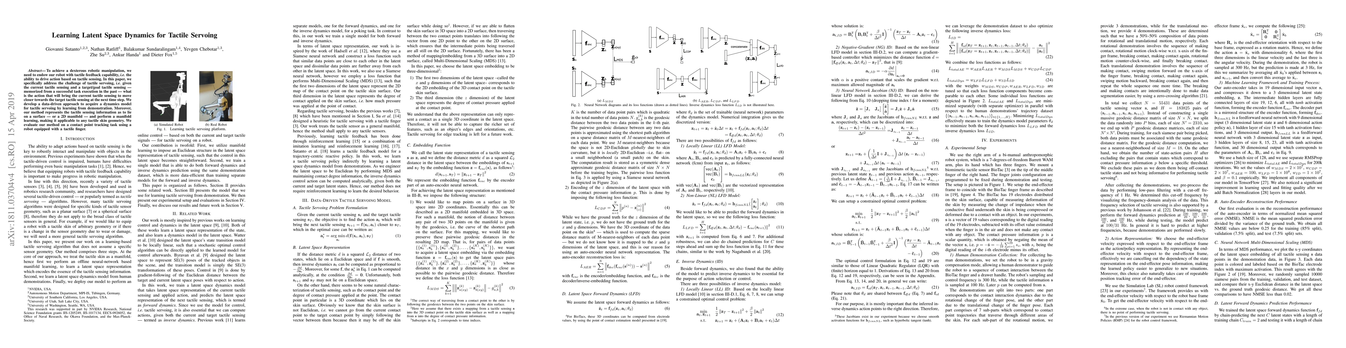 This paper proposes a data-driven approach to learning the dynamics of tactile servoing for robotic manipulation, utilizing manifold learning to generalize across different tactile skin geometries. The method is evaluated on a contact point tracking task using a robot finger equipped with tactile sensors.