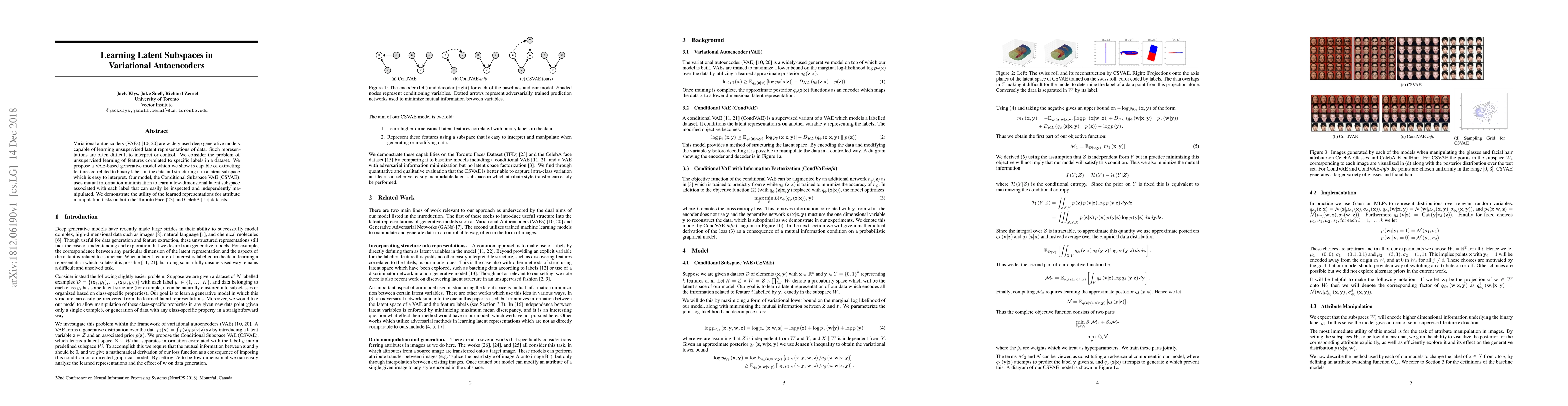 The paper proposes a Conditional Subspace VAE (CSVAE) to learn interpretable latent subspaces correlated to specific labels in datasets. This model uses mutual information minimization to extract and structure features in a way that allows easy inspection and manipulation, demonstrated through attribute manipulation tasks on face datasets.