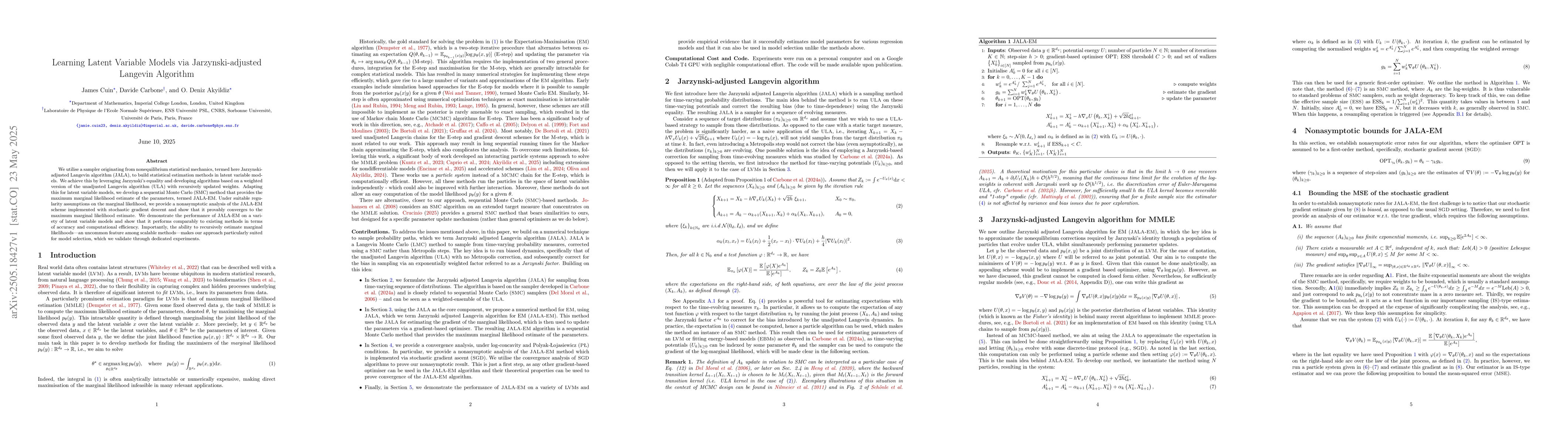 This work stands out by merging principles from nonequilibrium statistical mechanics with sampling techniques for latent variable models, introducing a novel approach to parameter estimation and model selection.