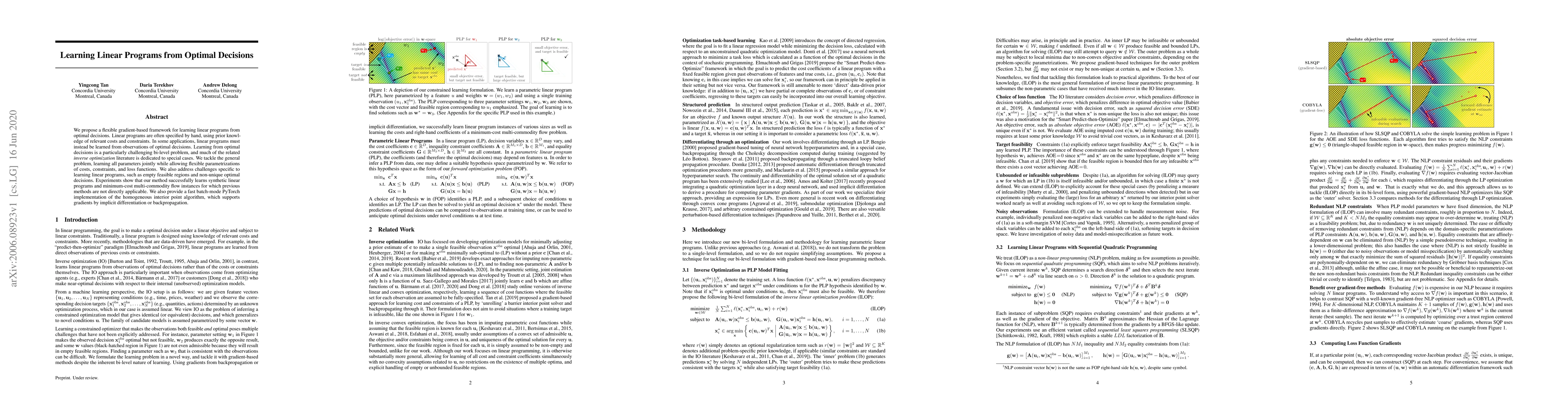 Researchers propose a flexible framework to learn linear programs from optimal decisions, addressing challenges such as empty feasible regions and non-unique optimal solutions in experiments with synthetic data and minimum-cost multi-commodity flow instances.