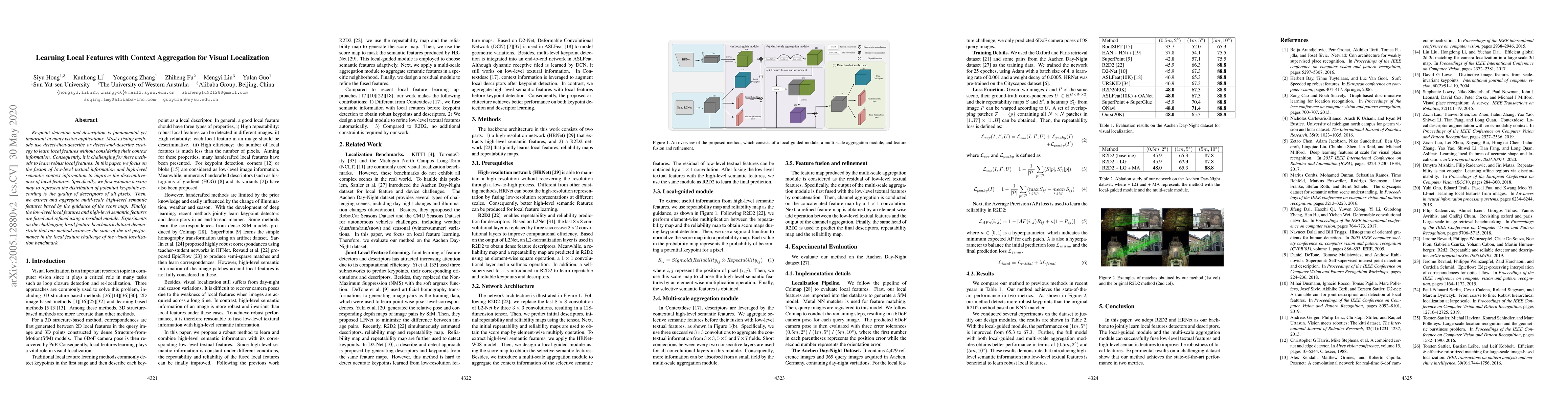 Keypoint detection and description is fundamental yet important in many vision applications. Most existing methods use detect-then-describe or detect-and-describe strategy to learn local features without considering their context information. Consequently, it is challenging for these methods to learn robust local features. In this paper, we focus on the fusion of low-level textual information and high-level semantic context information to improve the discrimitiveness of local features. Specifically, we first estimate a score map to represent the distribution of potential keypoints according to the quality of descriptors of all pixels. Then, we extract and aggregate multi-scale high-level semantic features based by the guidance of the score map. Finally, the low-level local features and high-level semantic features are fused and refined using a residual module. Experiments on the challenging local feature benchmark dataset demonstrate that our method achieves the state-of-the-art performance in the local feature challenge of the visual localization benchmark.