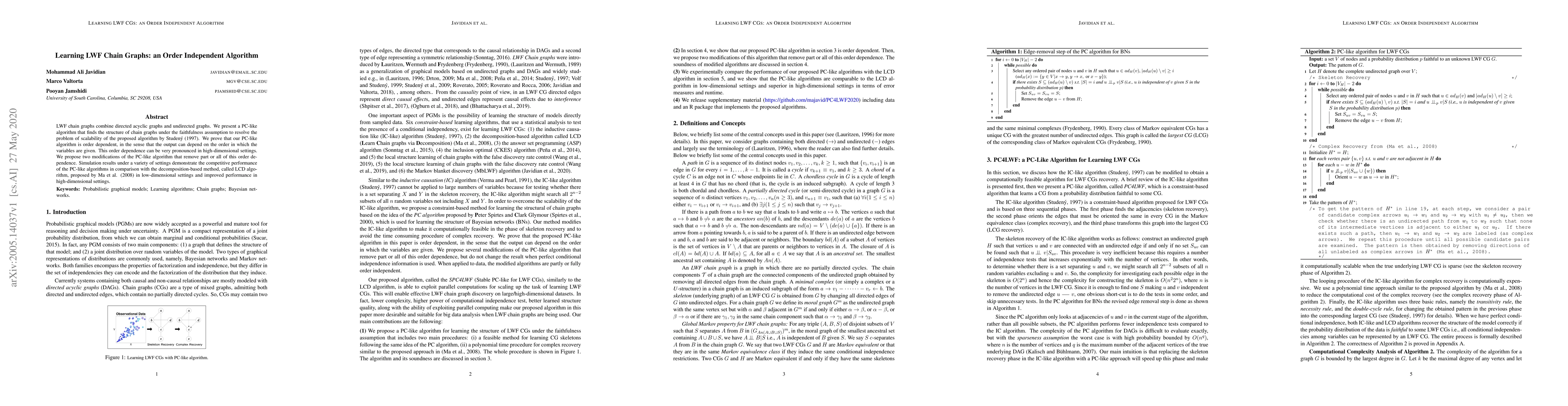 This paper introduces a PC-like algorithm for learning LWF chain graphs, addressing scalability issues and order dependence. It proposes modifications to mitigate order dependence and demonstrates competitive performance against existing methods in both low and high-dimensional settings.
