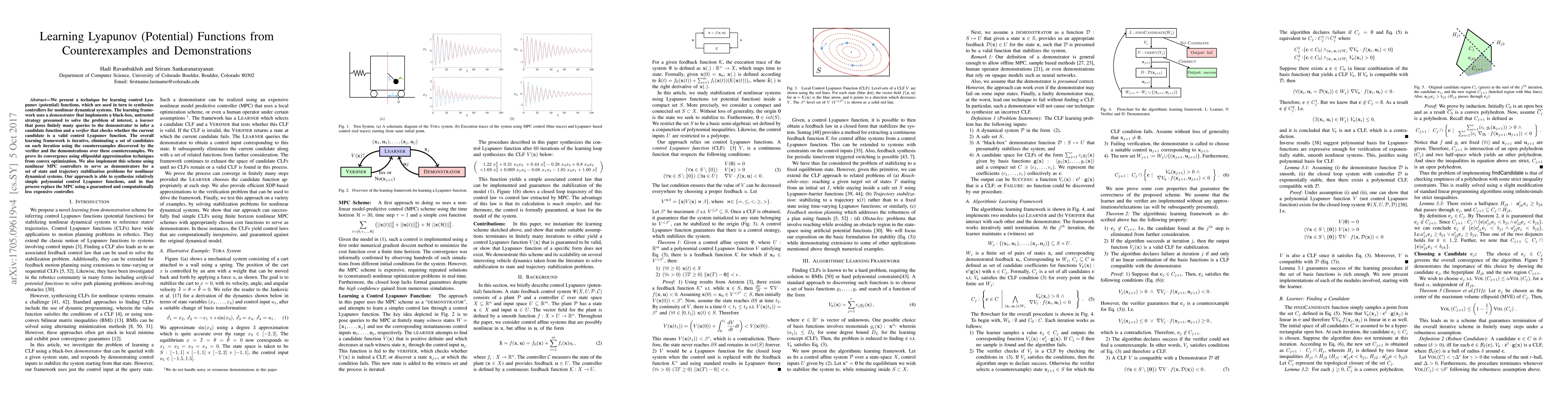 This paper introduces a method for learning control Lyapunov functions through an iterative framework involving a demonstrator, learner, and verifier. The technique synthesizes controllers for nonlinear systems by iteratively refining candidate functions using counterexamples and demonstrations, ultimately proving convergence via convex optimization techniques.