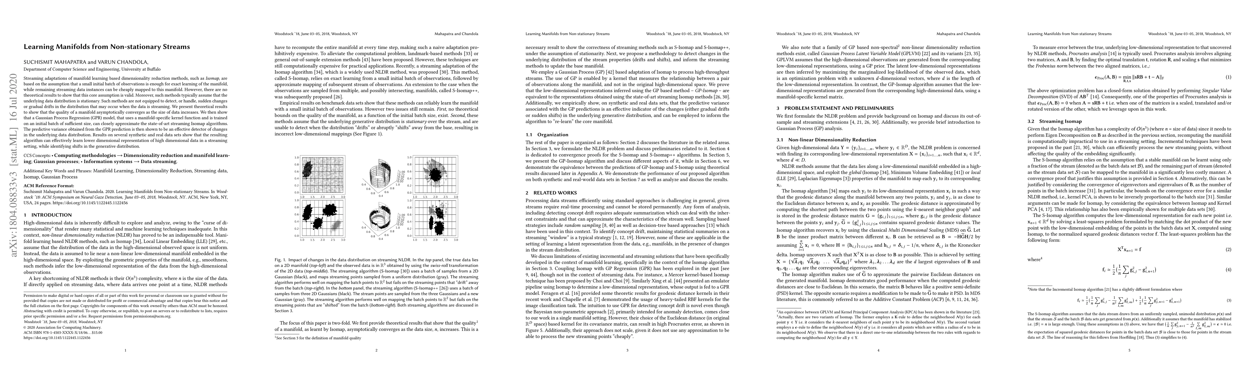 This paper presents theoretical results demonstrating that manifold learning methods can asymptotically converge in quality as data size increases. It introduces a Gaussian Process Regression model with a manifold-specific kernel to approximate streaming Isomap algorithms, effectively detecting shifts in data distribution using predictive variance.