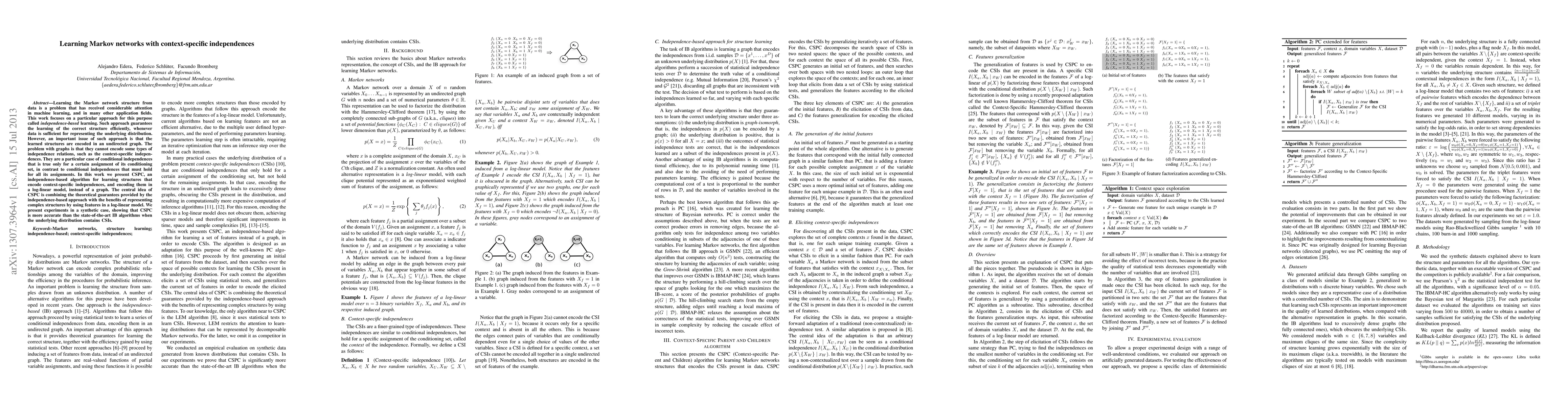 This paper introduces CSPC, an algorithm that learns context-specific independences in a log-linear model, improving upon existing independence-based algorithms.