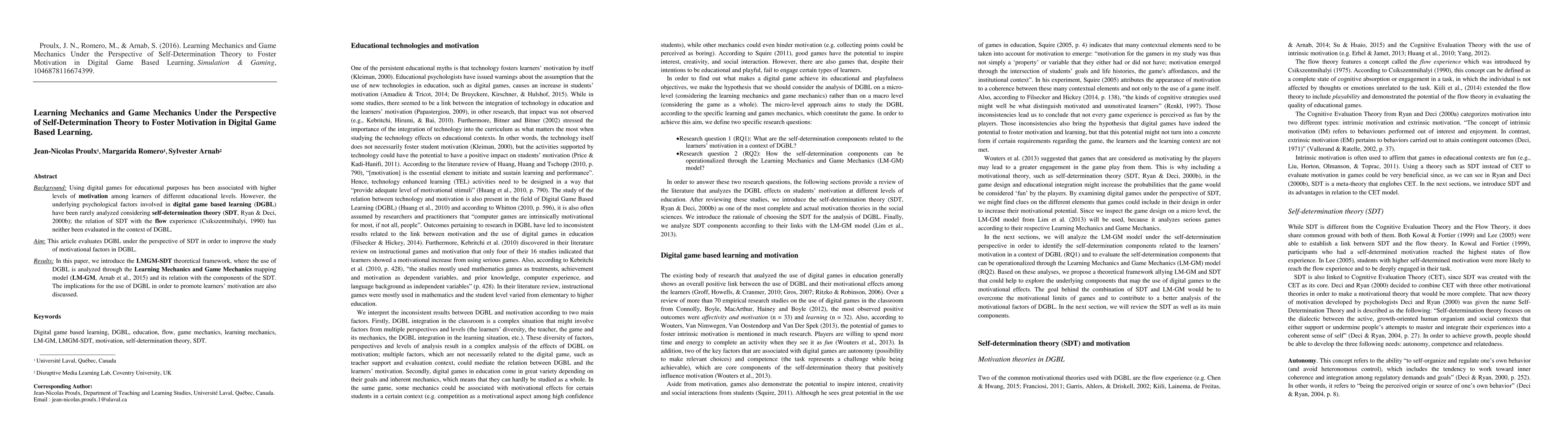 This paper explores the application of self-determination theory (SDT) to understand the motivational mechanics in digital game-based learning (DGBL). It investigates the relationship between SDT and the flow experience to enhance learner motivation in educational gaming contexts.