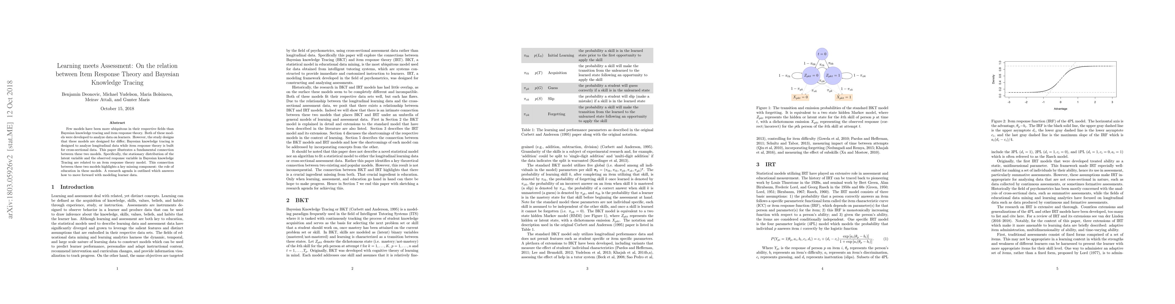 This paper explores the fundamental link between Bayesian knowledge tracing and item response theory, highlighting their respective applications to longitudinal and cross-sectional learner data. It reveals that the stationary distribution in Bayesian knowledge tracing aligns with item response theory, underscoring the need to incorporate educational context in these models and proposing a research agenda to enhance their integration.