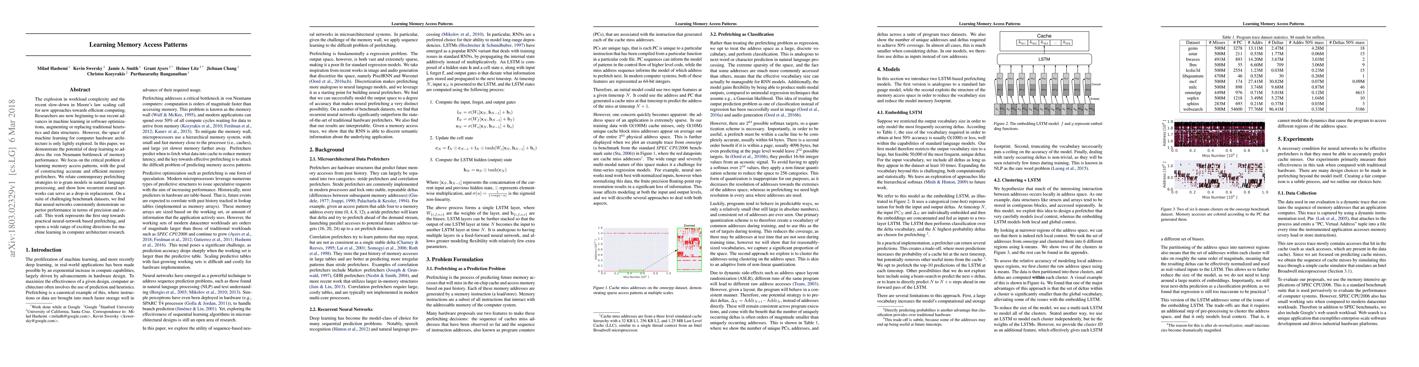This paper explores the use of deep learning to optimize memory performance by learning memory access patterns, proposing recurrent neural networks as effective prefetchers that outperform traditional n-gram models. The study demonstrates superior precision and recall of neural networks on benchmark datasets, marking a promising first step in neural-network based memory optimization.