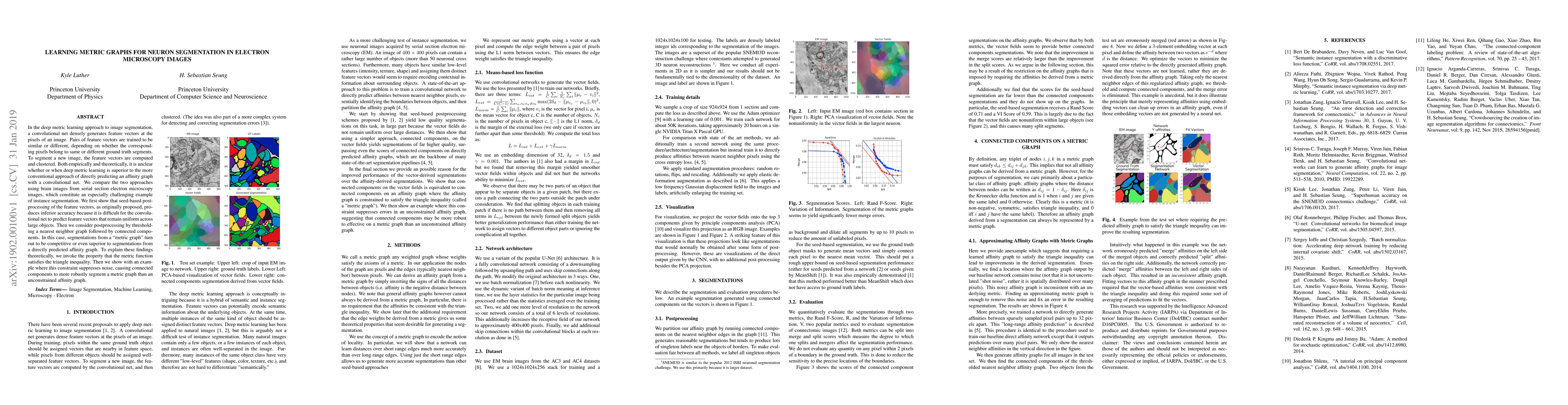 This paper compares deep metric learning and conventional affinity graph prediction for neuron segmentation in electron microscopy images. While seed-based postprocessing of feature vectors is found to be ineffective, thresholding a nearest neighbor graph derived from metric learning yields competitive or superior segmentation results, attributed to the triangle inequality's noise-suppressing effect.