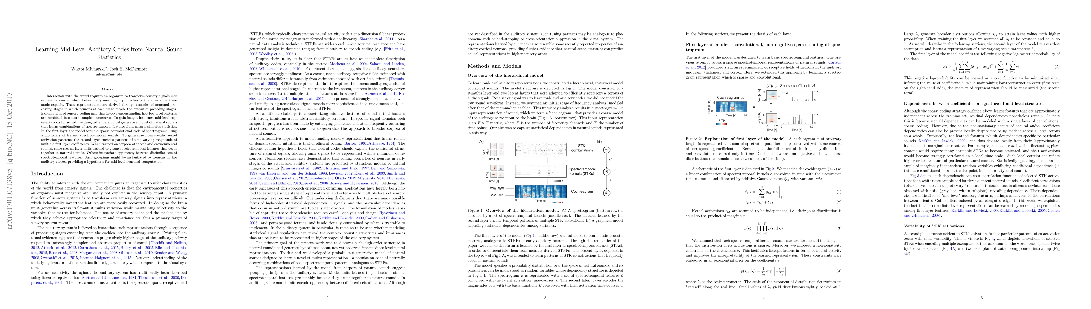 A hierarchical generative model learns combinations of spectrotemporal features from natural sound statistics to form mid-level auditory representations. These representations may be used by neurons in the auditory cortex to group similar acoustic patterns.