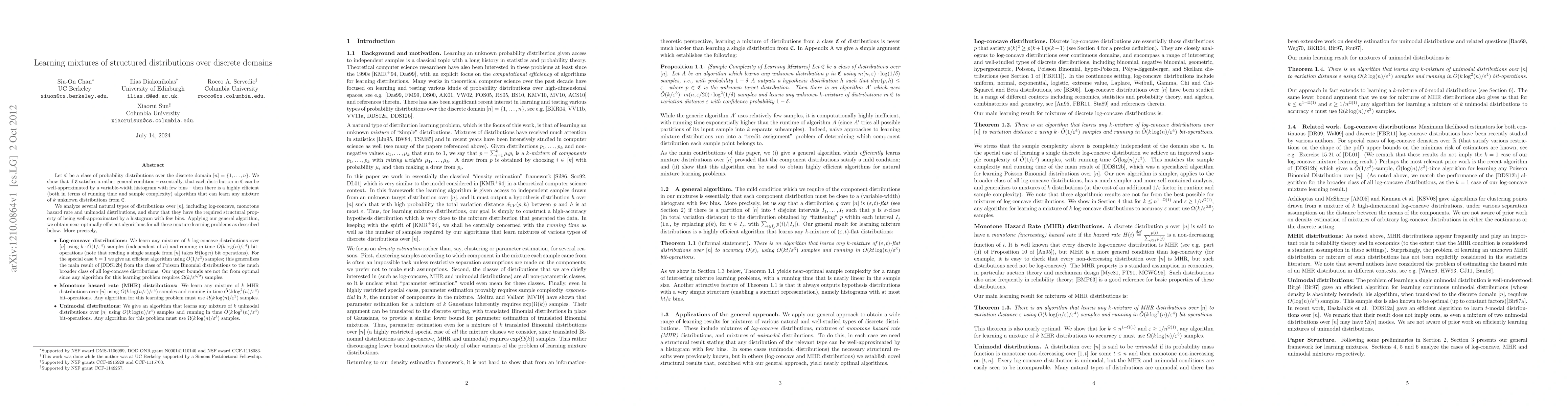 This paper presents an efficient algorithm for learning mixtures of structured distributions over discrete domains, provided these distributions can be approximated by histograms with few bins. The authors demonstrate the algorithm's applicability to various types of distributions, including log-concave, monotone hazard rate, and unimodal distributions, achieving near-optimal efficiency.