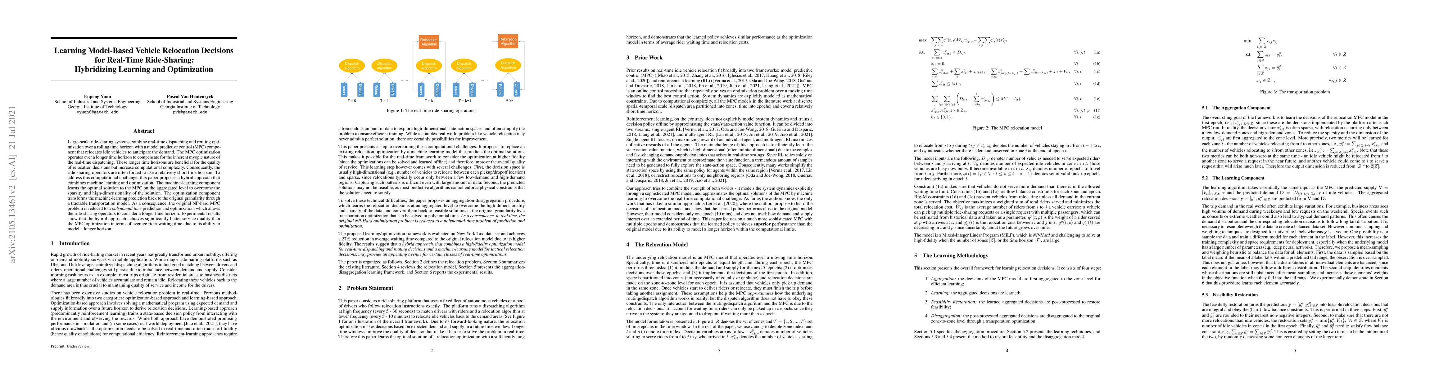 This paper proposes a hybrid approach combining machine learning and optimization to improve vehicle-relocation decisions in real-time ride-sharing systems. The machine learning component addresses high-dimensionality and sparsity, while the optimization component refines predictions for practical application, enabling longer-term planning and better service quality.