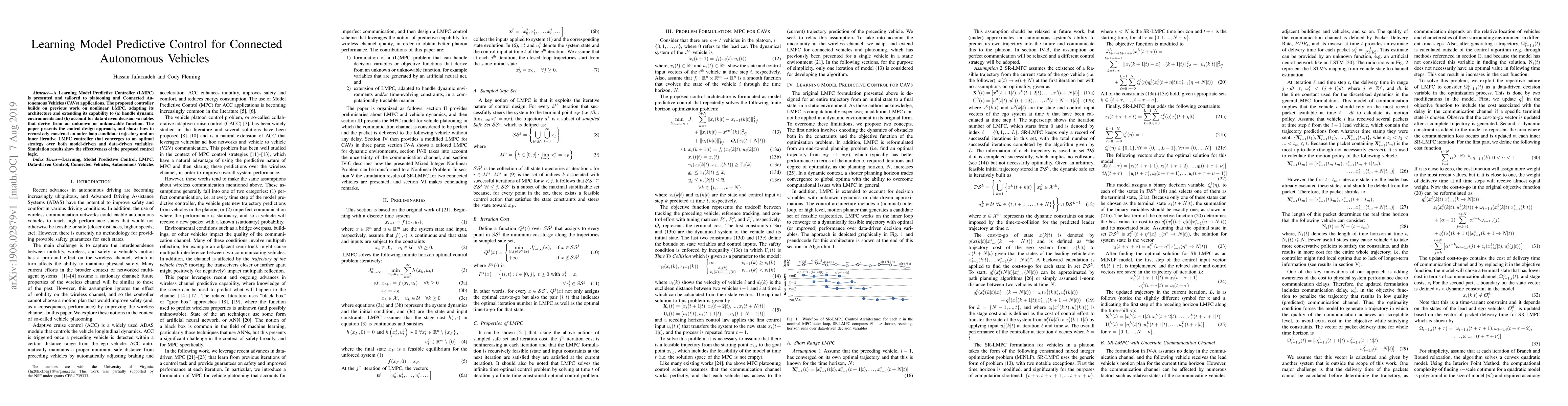 This paper proposes a Learning Model Predictive Controller (LMPC) for platooning and Connected Autonomous Vehicles (CAVs), enhancing its capability to handle dynamic environments and data-driven decision variables. The controller recursively constructs an optimal strategy, demonstrating effectiveness through simulations.