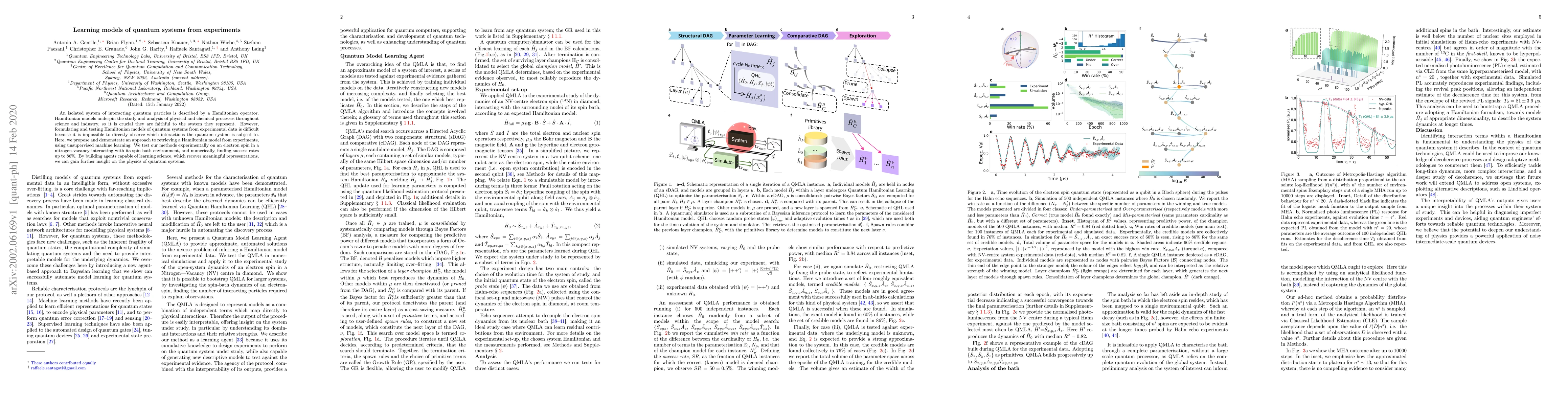 An isolated system of interacting quantum particles is described by a Hamiltonian operator. Hamiltonian models underpin the study and analysis of physical and chemical processes throughout science and industry, so it is crucial they are faithful to the system they represent. However, formulating and testing Hamiltonian models of quantum systems from experimental data is difficult because it is impossible to directly observe which interactions the quantum system is subject to. Here, we propose and demonstrate an approach to retrieving a Hamiltonian model from experiments, using unsupervised machine learning. We test our methods experimentally on an electron spin in a nitrogen-vacancy interacting with its spin bath environment, and numerically, finding success rates up to 86%. By building agents capable of learning science, which recover meaningful representations, we can gain further insight on the physics of quantum systems.