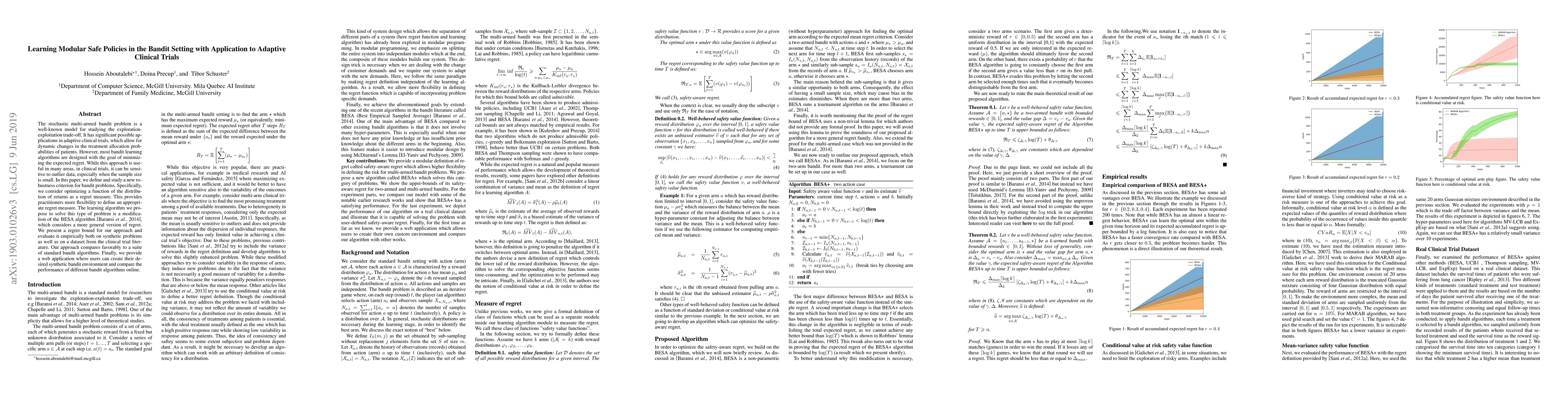 The stochastic multi-armed bandit problem is a well-known model for studying the exploration-exploitation trade-off. It has significant possible applications in adaptive clinical trials, which allow for dynamic changes in the treatment allocation probabilities of patients. However, most bandit learning algorithms are designed with the goal of minimizing the expected regret. While this approach is useful in many areas, in clinical trials, it can be sensitive to outlier data, especially when the sample size is small. In this paper, we define and study a new robustness criterion for bandit problems. Specifically, we consider optimizing a function of the distribution of returns as a regret measure. This provides practitioners more flexibility to define an appropriate regret measure. The learning algorithm we propose to solve this type of problem is a modification of the BESA algorithm [Baransi et al., 2014], which considers a more general version of regret. We present a regret bound for our approach and evaluate it empirically both on synthetic problems as well as on a dataset from the clinical trial literature. Our approach compares favorably to a suite of standard bandit algorithms.