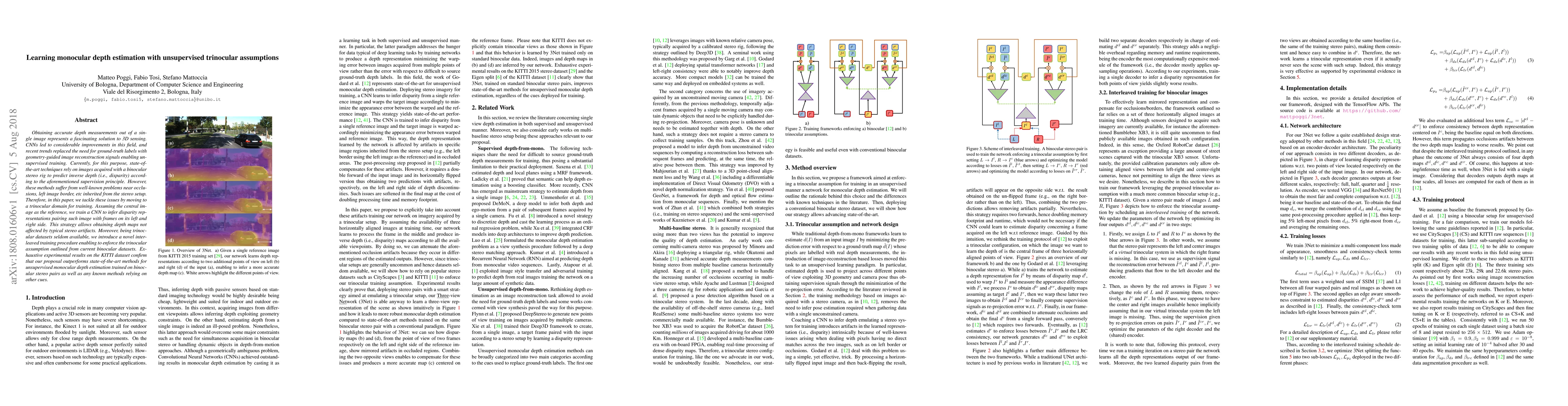 This paper proposes an unsupervised monocular depth estimation method using trinocular assumptions to overcome stereo-based artifacts. By training a CNN with central and surrounding images from a trinocular setup, the method achieves superior depth map accuracy, validated on the KITTI dataset.