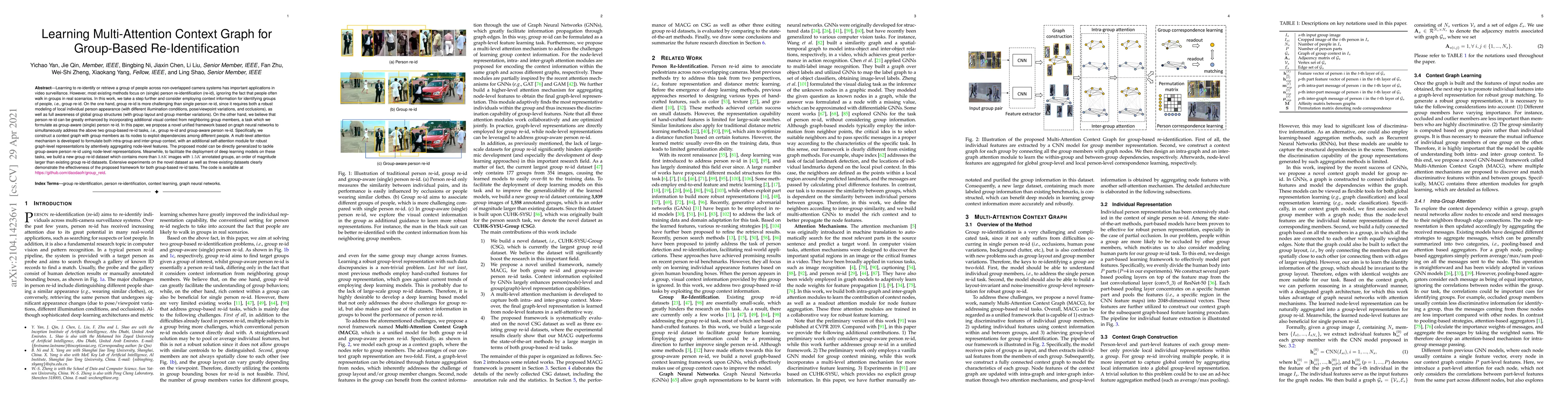 This paper proposes a novel framework using graph neural networks and multi-attention context graphs to tackle group-based re-identification across non-overlapping camera systems. The method constructs a context graph to exploit dependencies among group members and employs a multi-level attention mechanism for robust representations, achieving effective group and group-aware person re-identification.