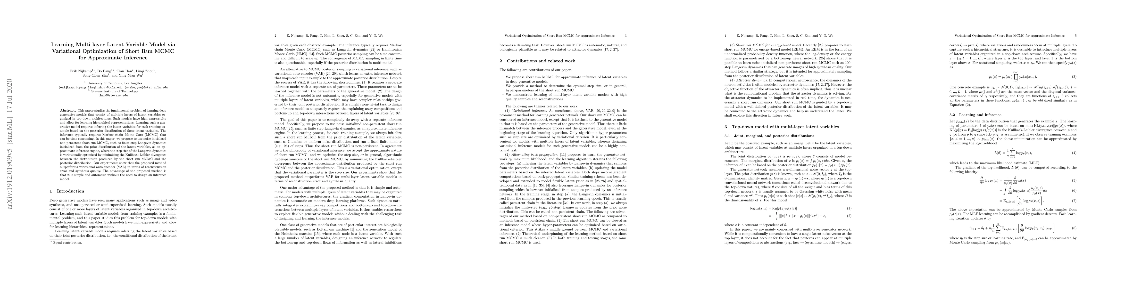 This paper proposes a noise-initialized short run MCMC approach, optimized via variational optimization, to efficiently infer latent variables in multi-layer generative models, outperforming VAEs in reconstruction and synthesis while being simple and automatic.