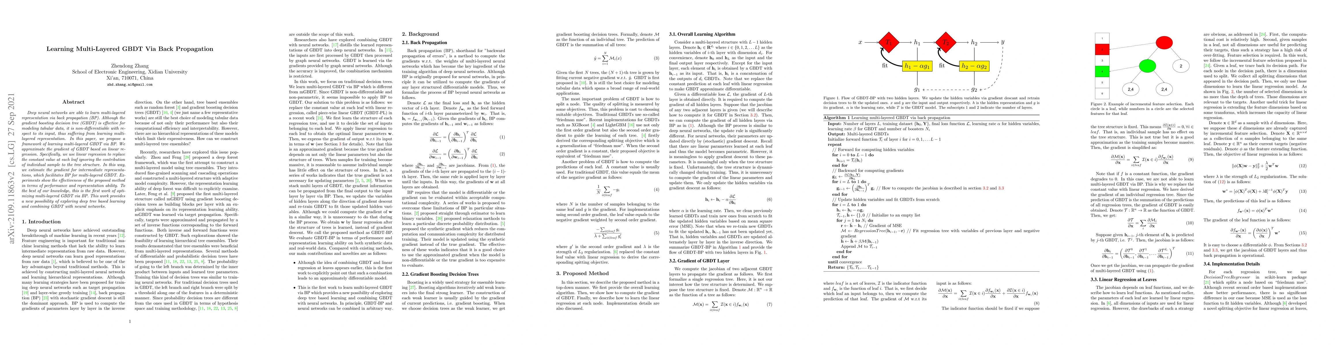 Deep neural networks are able to learn multi-layered representation via back propagation (BP). Although the gradient boosting decision tree (GBDT) is effective for modeling tabular data, it is non-differentiable with respect to its input, thus suffering from learning multi-layered representation. In this paper, we propose a framework of learning multi-layered GBDT via BP. We approximate the gradient of GBDT based on linear regression. Specifically, we use linear regression to replace the constant value at each leaf ignoring the contribution of individual samples to the tree structure. In this way, we estimate the gradient for intermediate representations, which facilitates BP for multi-layered GBDT. Experiments show the effectiveness of the proposed method in terms of performance and representation ability. To the best of our knowledge, this is the first work of optimizing multi-layered GBDT via BP. This work provides a new possibility of exploring deep tree based learning and combining GBDT with neural networks.