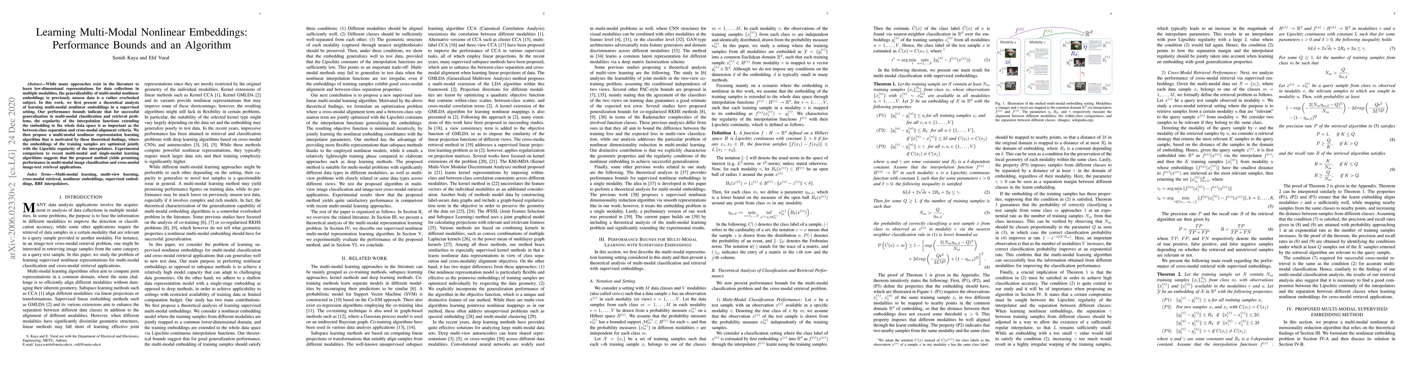 This paper presents a theoretical analysis of learning multi-modal nonlinear embeddings, emphasizing the importance of interpolation function regularity for generalization. It proposes a new algorithm that optimizes embeddings and interpolator regularity, showing promising results in multi-modal classification and cross-modal retrieval tasks.