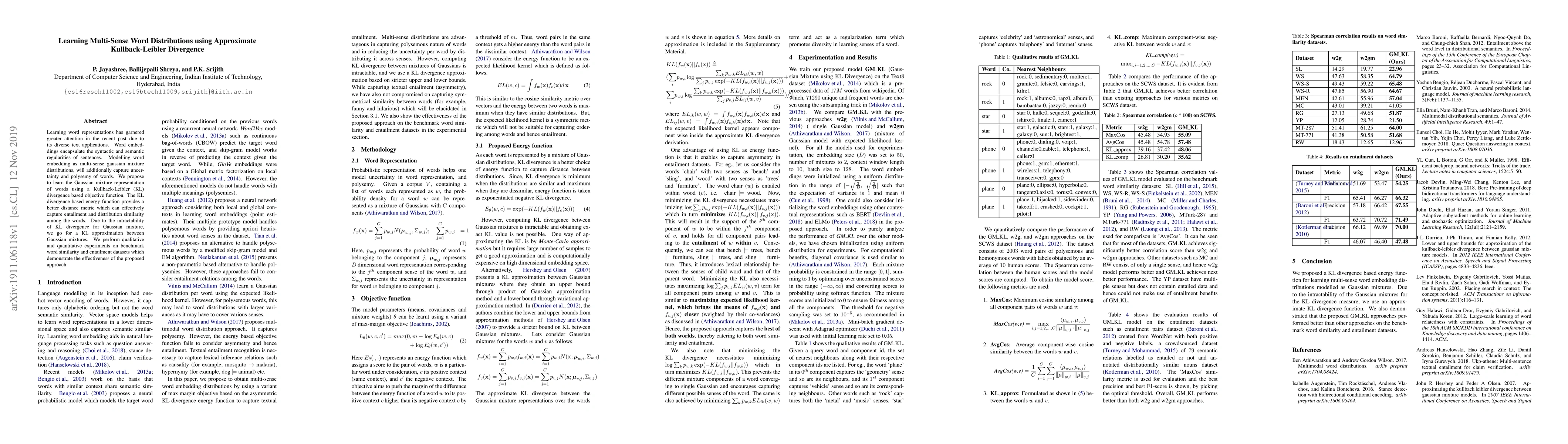This paper proposes a method to learn word representations that capture uncertainty and polysemy of words using Approximate Kullback-Leibler Divergence, effectively improving word embedding models.