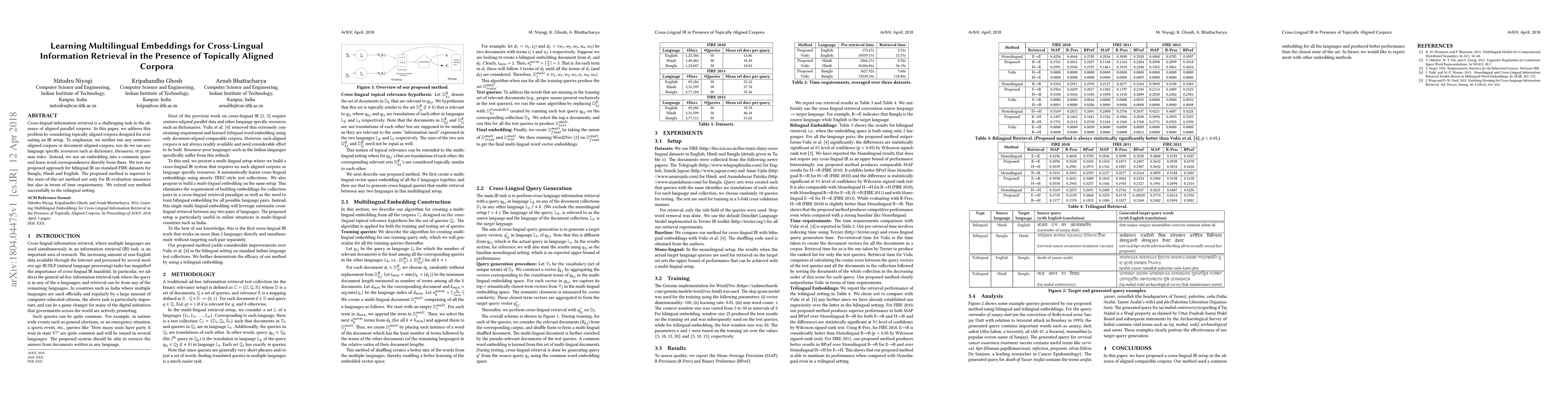 This paper proposes a method for cross-lingual information retrieval using multilingual embeddings and topically aligned corpora, without relying on parallel corpora or language-specific resources. The method outperforms existing approaches on FIRE datasets for Bangla, Hindi, and English, and is also extended successfully to a trilingual setting.