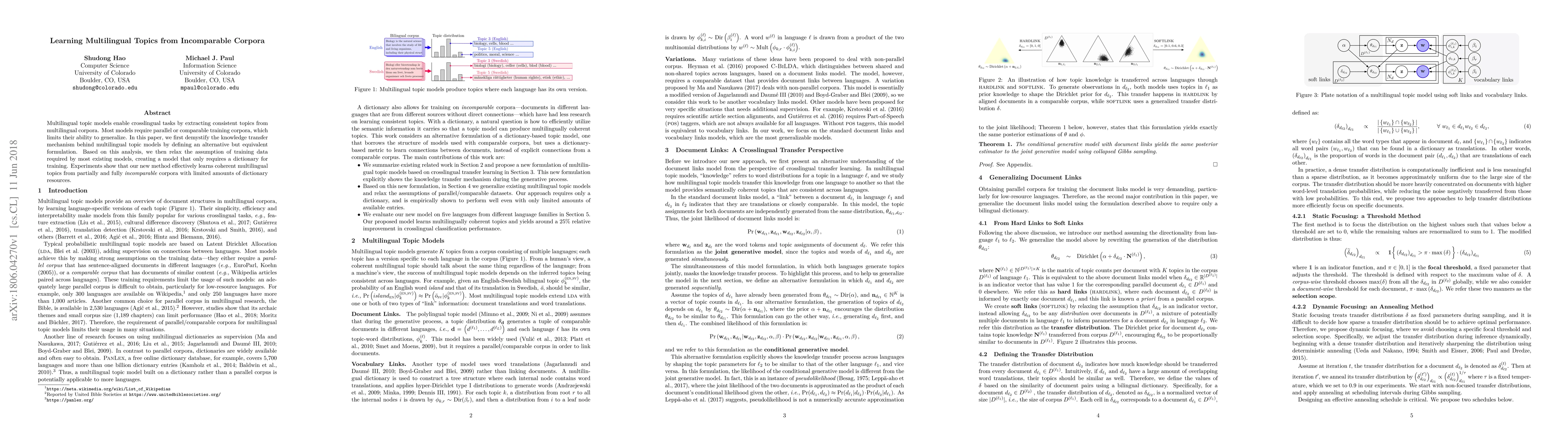 Multilingual topic models enable crosslingual tasks by extracting consistent topics from multilingual corpora. Most models require parallel or comparable training corpora, which limits their ability to generalize. In this paper, we first demystify the knowledge transfer mechanism behind multilingual topic models by defining an alternative but equivalent formulation. Based on this analysis, we then relax the assumption of training data required by most existing models, creating a model that only requires a dictionary for training. Experiments show that our new method effectively learns coherent multilingual topics from partially and fully incomparable corpora with limited amounts of dictionary resources.