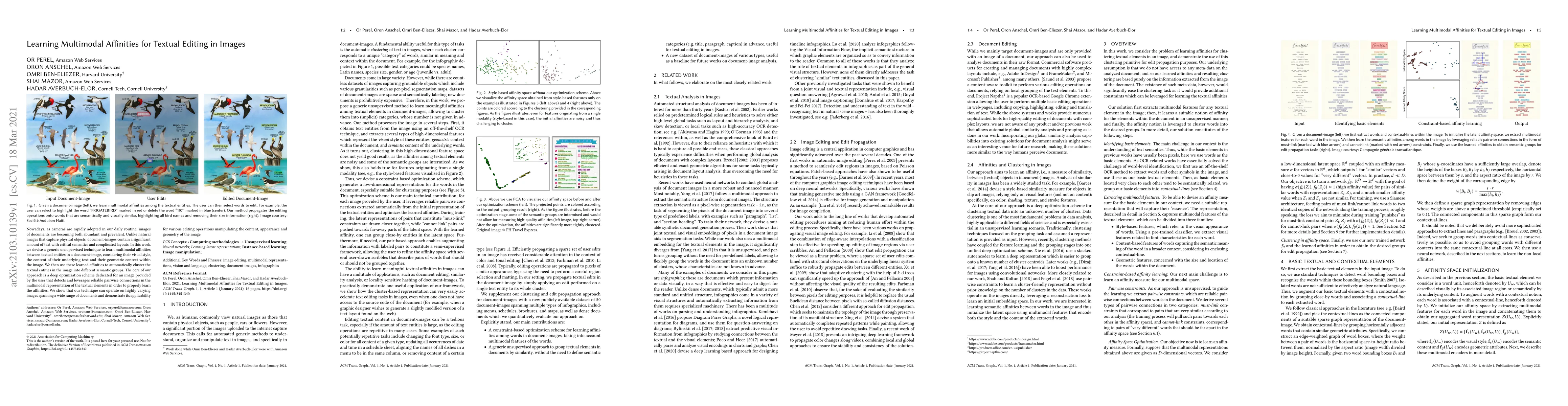 Researchers develop a technique to automatically cluster textual entities in document images into semantic groups based on visual style, text content, and geometric context. The approach leverages multimodal affinities for various editing operations manipulating image content, appearance, and geometry.