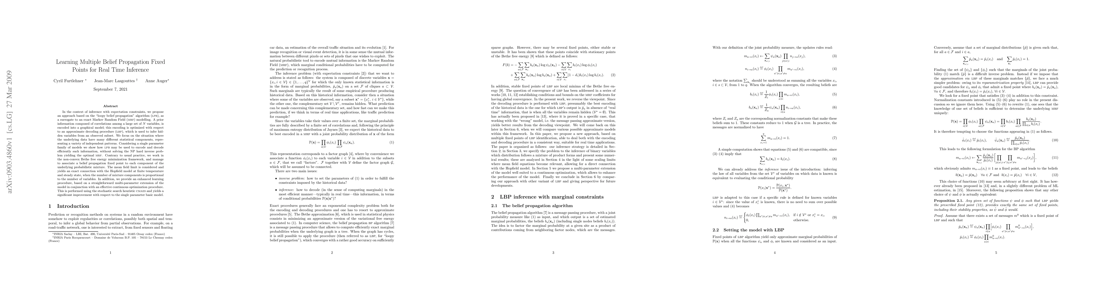 This paper proposes an approach using loopy belief propagation (LBP) to efficiently infer hidden variables in large-scale probabilistic models with multiple statistical components. It introduces an enhanced learning procedure based on multi-parameter extensions and continuous optimization, significantly improving inference over the basic model.