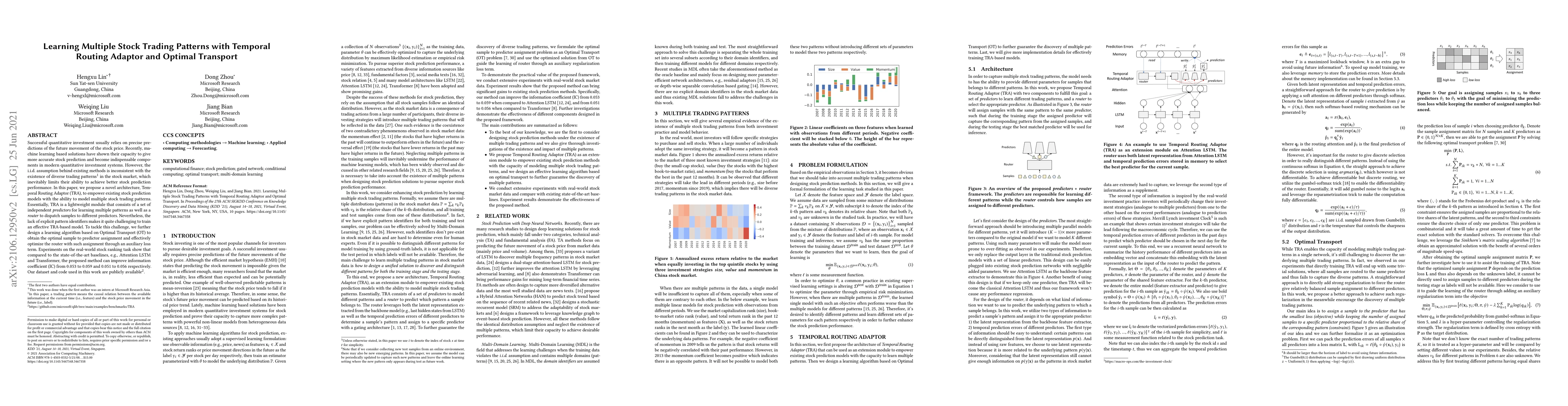 This paper proposes a Temporal Routing Adaptor (TRA) to enhance stock prediction models by learning multiple trading patterns, addressing the limitations of existing i.i.d. assumption-based methods. It employs Optimal Transport to optimize the routing and improve prediction accuracy, achieving better performance on real-world stock ranking tasks.