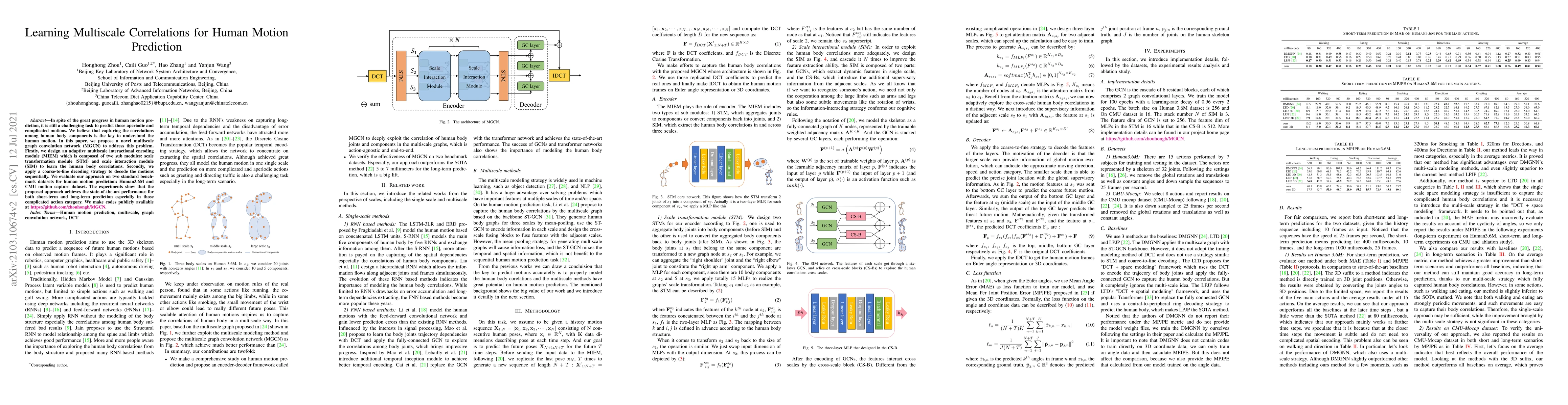 This paper proposes a novel multiscale graph convolution network (MGCN) to enhance human motion prediction by capturing correlations among body components. The adaptive multiscale interactional encoding module (MIEM) and a coarse-to-fine decoding strategy achieve state-of-the-art performance on benchmark datasets, particularly for complex motions.