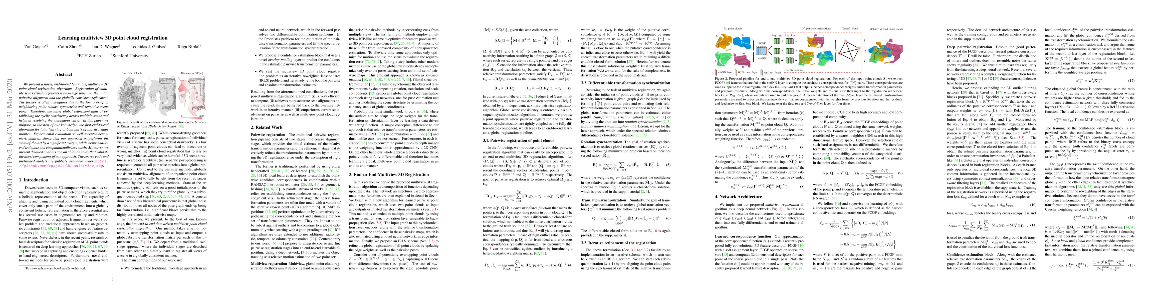 This paper introduces an end-to-end learnable algorithm for multiview 3D point cloud registration, jointly learning both initial pairwise alignment and global refinement. The proposed method outperforms existing state-of-the-art techniques and is computationally efficient.