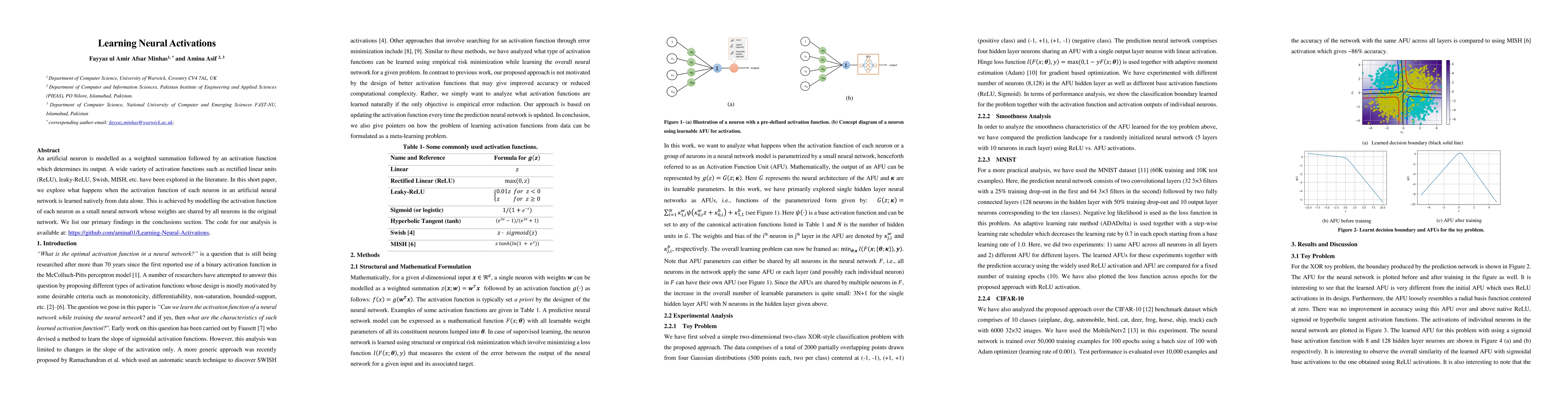 This paper investigates learning the activation functions of artificial neurons directly from data, using a small neural network to model each neuron's activation function. The study finds that this approach can improve the performance of neural networks. Code for the analysis is available on GitHub.