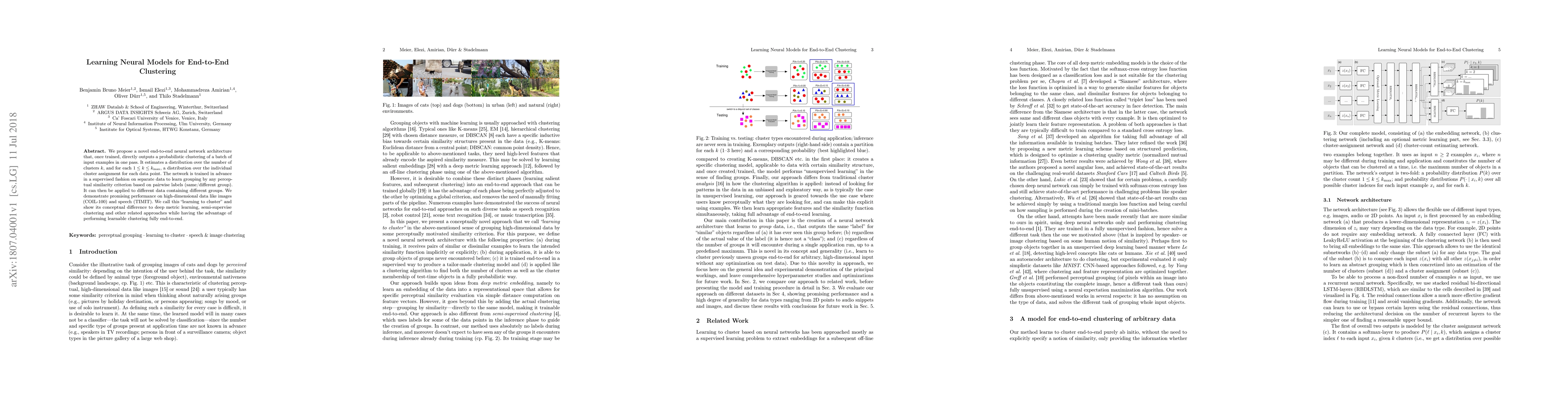 A novel neural network architecture can directly output a probabilistic clustering of input examples in one pass, learning to cluster from separate data and performing well on high-dimensional data such as images and speech.