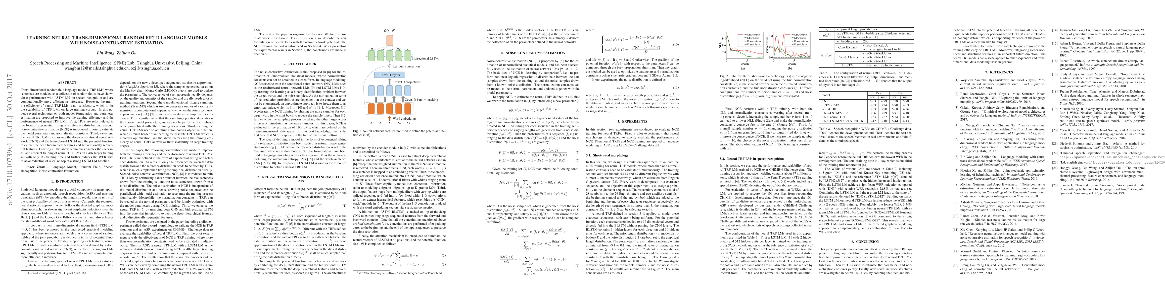 This paper proposes techniques to enhance the training efficiency and performance of neural trans-dimensional random field language models (TRF LMs), including reformulating TRFs via exponential tilting, employing noise-contrastive estimation (NCE), and integrating CNN and bidirectional LSTM into the potential function. These improvements enable efficient training on large datasets and achieve a 4.7% relative reduction in word error rate (WER).