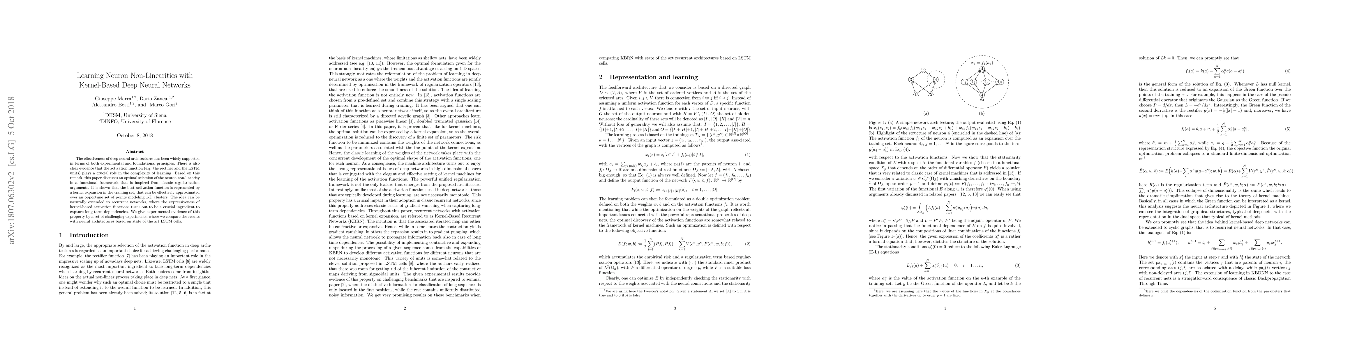 The effectiveness of deep neural architectures has been widely supported in terms of both experimental and foundational principles. There is also clear evidence that the activation function (e.g. the rectifier and the LSTM units) plays a crucial role in the complexity of learning. Based on this remark, this paper discusses an optimal selection of the neuron non-linearity in a functional framework that is inspired from classic regularization arguments. It is shown that the best activation function is represented by a kernel expansion in the training set, that can be effectively approximated over an opportune set of points modeling 1-D clusters. The idea can be naturally extended to recurrent networks, where the expressiveness of kernel-based activation functions turns out to be a crucial ingredient to capture long-term dependencies. We give experimental evidence of this property by a set of challenging experiments, where we compare the results with neural architectures based on state of the art LSTM cells.