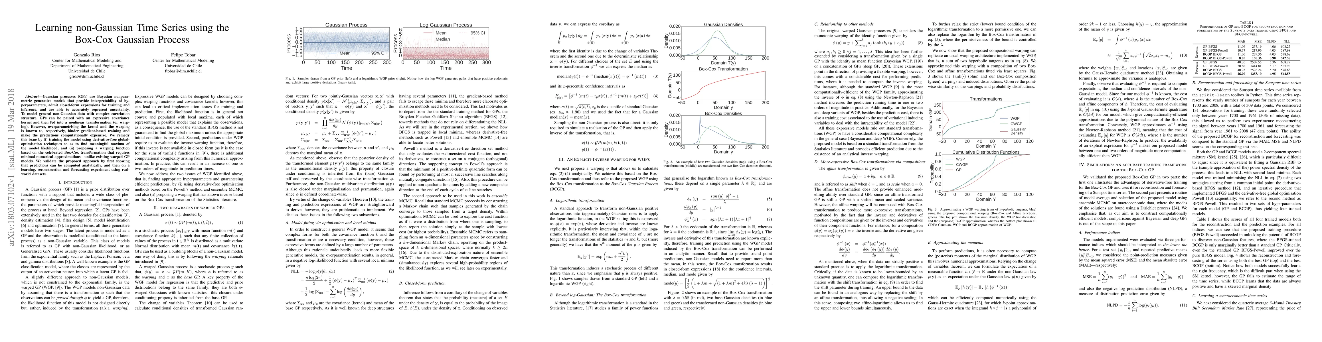 This paper proposes a method to model non-Gaussian time series using a Box-Cox Gaussian Process, addressing the challenges of overparametrization and computational expense through derivative-free optimization and a minimal approximation warping function. The approach is validated through analytical prediction computation and real-world dataset experiments.