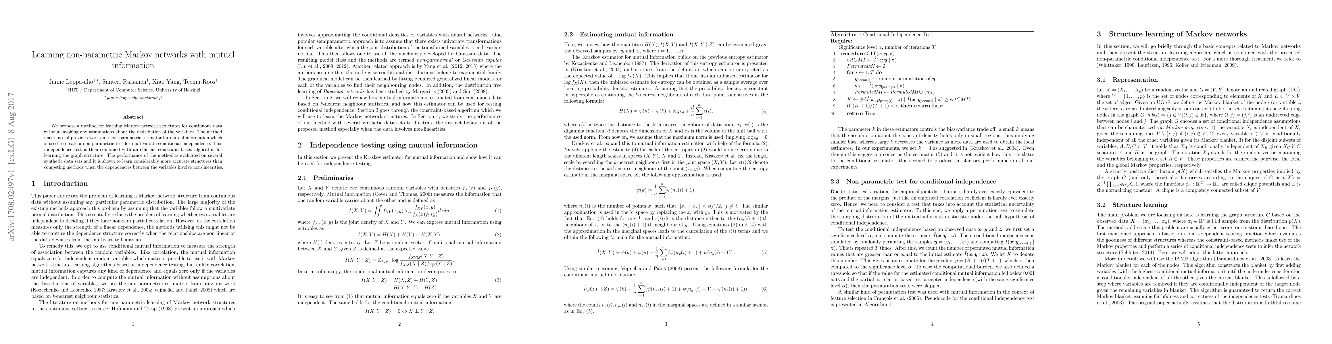Researchers developed a new method for learning Markov network structures without assuming distribution types, achieving accurate models with non-linear dependencies. The approach outperformed competing methods on synthetic data sets.