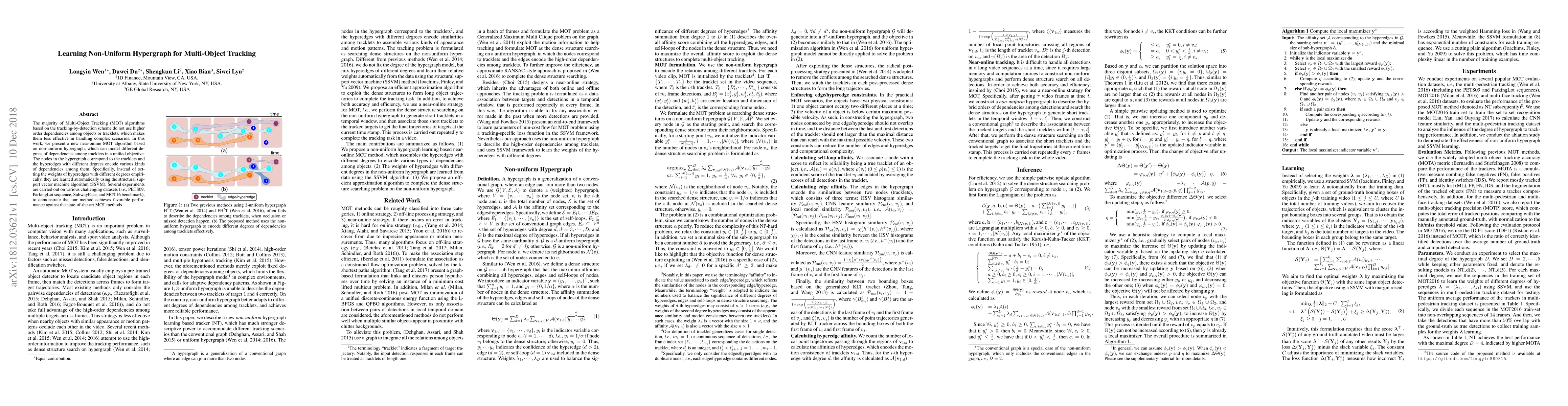 The majority of Multi-Object Tracking (MOT) algorithms based on the tracking-by-detection scheme do not use higher order dependencies among objects or tracklets, which makes them less effective in handling complex scenarios. In this work, we present a new near-online MOT algorithm based on non-uniform hypergraph, which can model different degrees of dependencies among tracklets in a unified objective. The nodes in the hypergraph correspond to the tracklets and the hyperedges with different degrees encode various kinds of dependencies among them. Specifically, instead of setting the weights of hyperedges with different degrees empirically, they are learned automatically using the structural support vector machine algorithm (SSVM). Several experiments are carried out on various challenging datasets (i.e., PETS09, ParkingLot sequence, SubwayFace, and MOT16 benchmark), to demonstrate that our method achieves favorable performance against the state-of-the-art MOT methods.