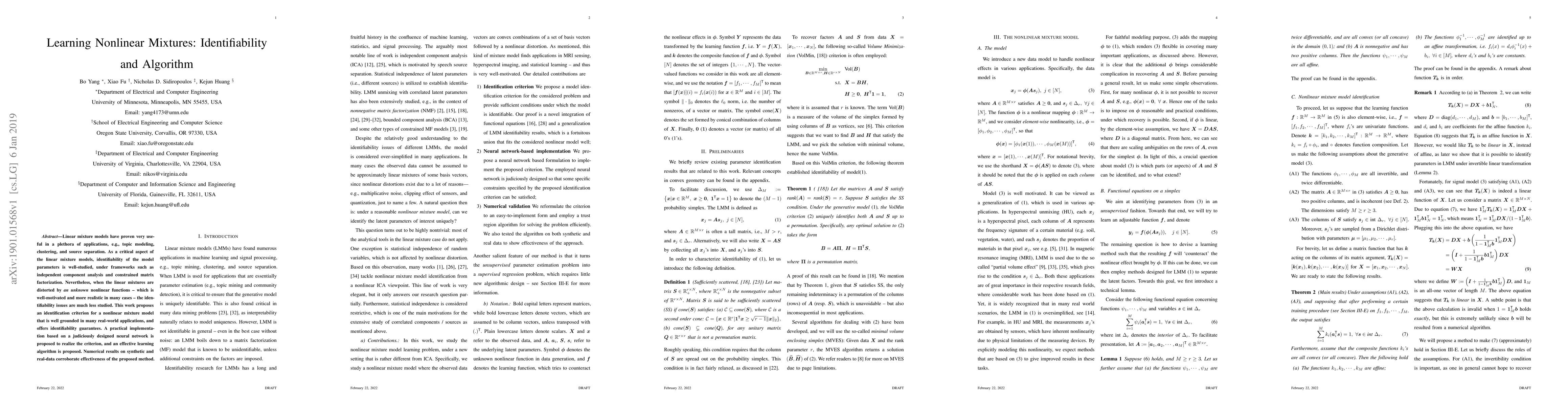 The paper introduces an identifiability criterion and a practical neural network-based implementation for nonlinear mixture models, along with an effective learning algorithm.