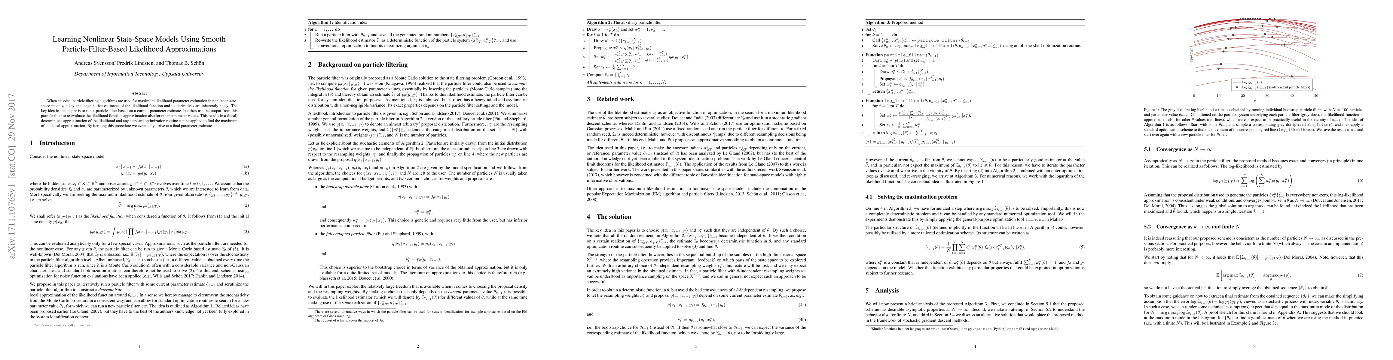 This paper proposes a method for parameter estimation in nonlinear state-space models using a particle filter to obtain a smooth, deterministic approximation of the likelihood function. The iterative process leverages the particle filter's output to refine the likelihood approximation, enabling the use of standard optimization routines for parameter estimation.