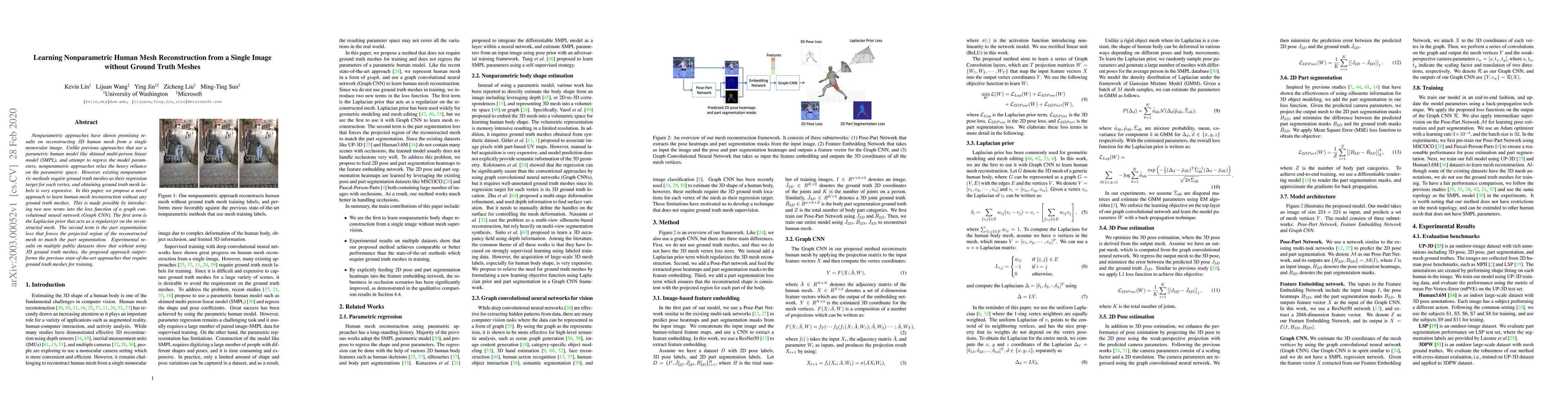This paper proposes a novel nonparametric method for reconstructing 3D human meshes from a single image without requiring ground truth meshes, using a graph convolutional neural network with a Laplacian prior and part segmentation loss to achieve superior results compared to previous methods.