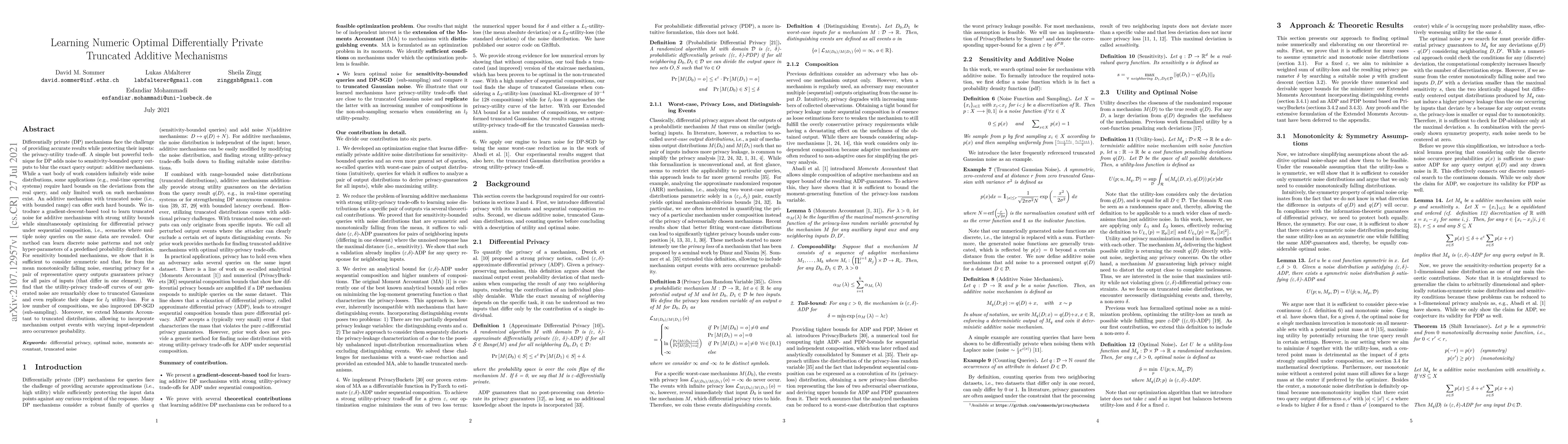 This paper introduces a gradient-descent-based method for learning truncated noise in differentially private additive mechanisms to optimize both privacy and utility under sequential composition. The method can learn discrete noise patterns and achieves strong privacy guarantees while maintaining utility close to truncated Gaussian distributions.