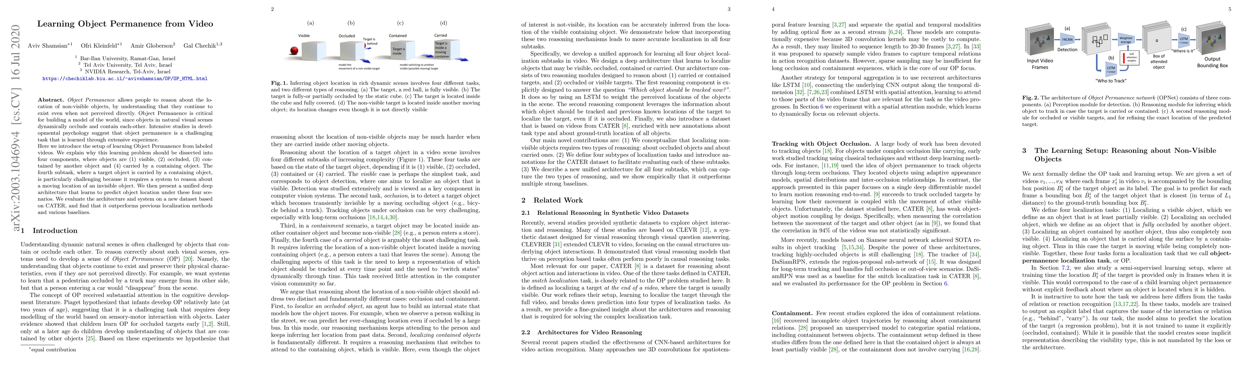 This paper introduces a deep learning architecture to model Object Permanence, dissecting it into four components: visible, occluded, contained, and carried objects. The system excels at predicting invisible object locations, especially when carried, and outperforms previous methods on a new dataset.