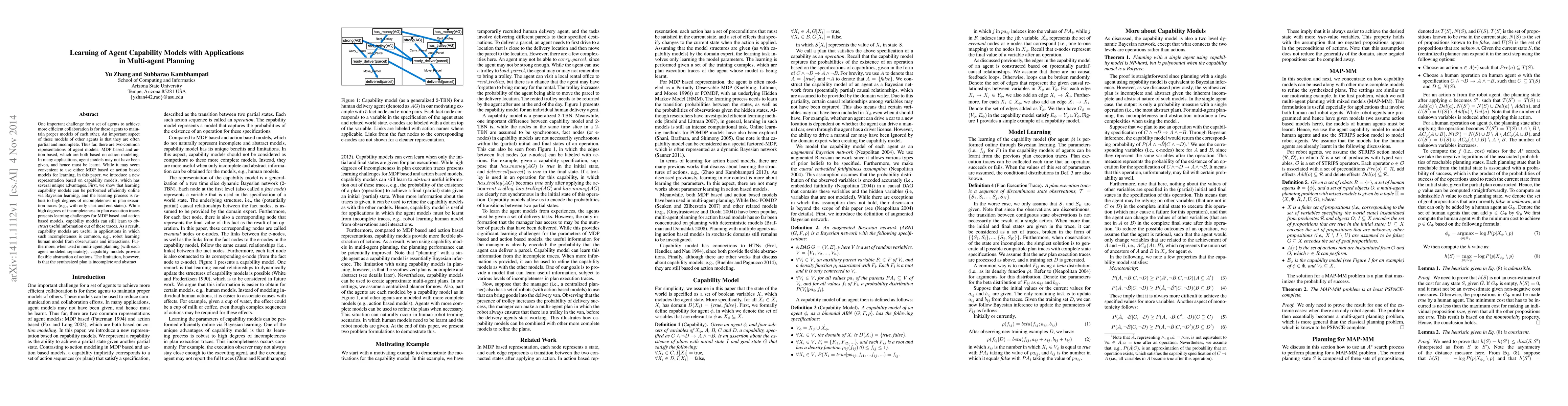 This paper introduces a new representation of agent models based on capability models, which can learn efficiently online via Bayesian learning and handle high degrees of incompleteness in plan execution traces.