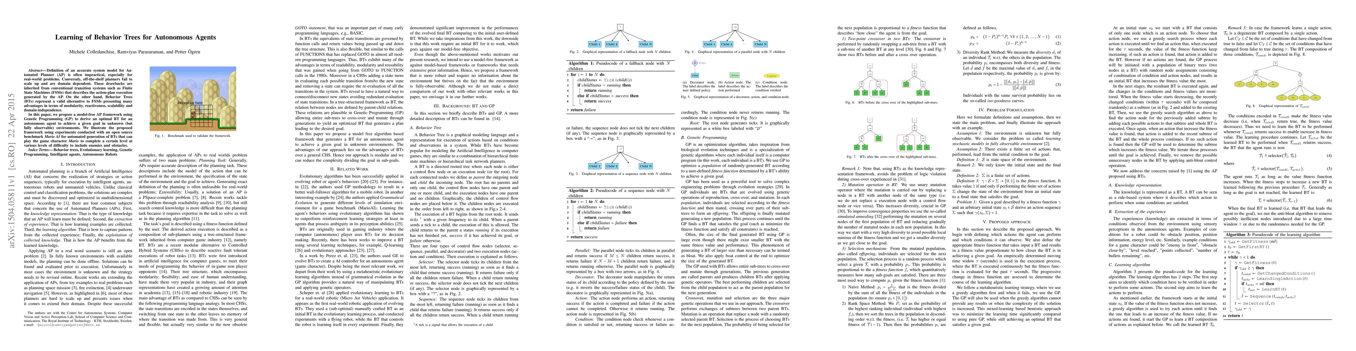 The use of Genetic Programming to derive optimal Behavior Trees presents a novel approach to AP.
