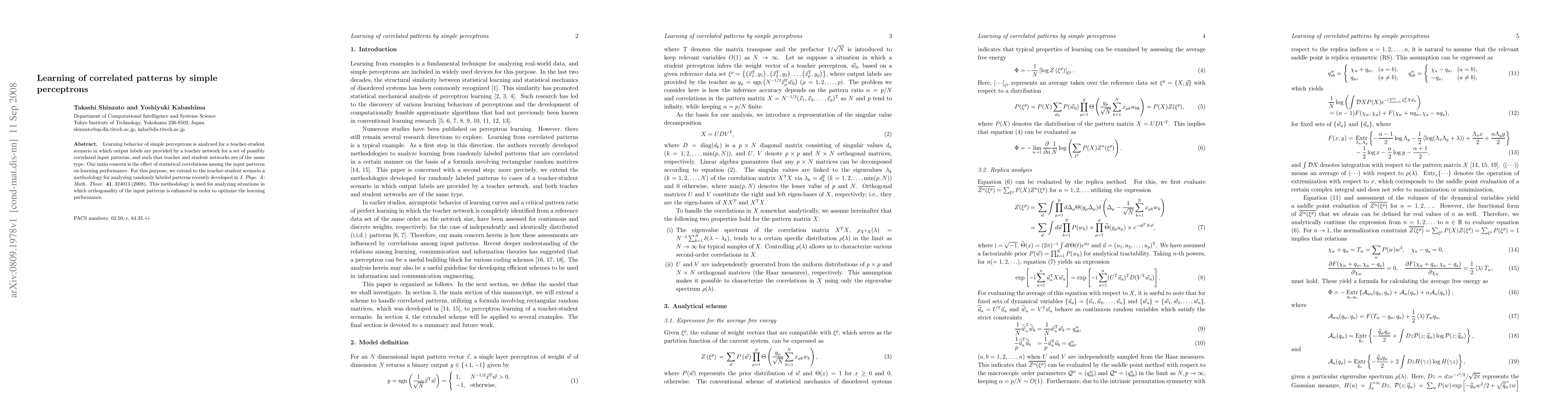 Learning behavior of simple perceptrons is analyzed for a teacher-student scenario in which output labels are provided by a teacher network for a set of possibly correlated input patterns, and such that teacher and student networks are of the same type. Our main concern is the effect of statistical correlations among the input patterns on learning performance. For this purpose, we extend to the teacher-student scenario a methodology for analyzing randomly labeled patterns recently developed in {\em J. Phys. A: Math. Theor.} {\bf 41}, 324013 (2008). This methodology is used for analyzing situations in which orthogonality of the input patterns is enhanced in order to optimize the learning performance.