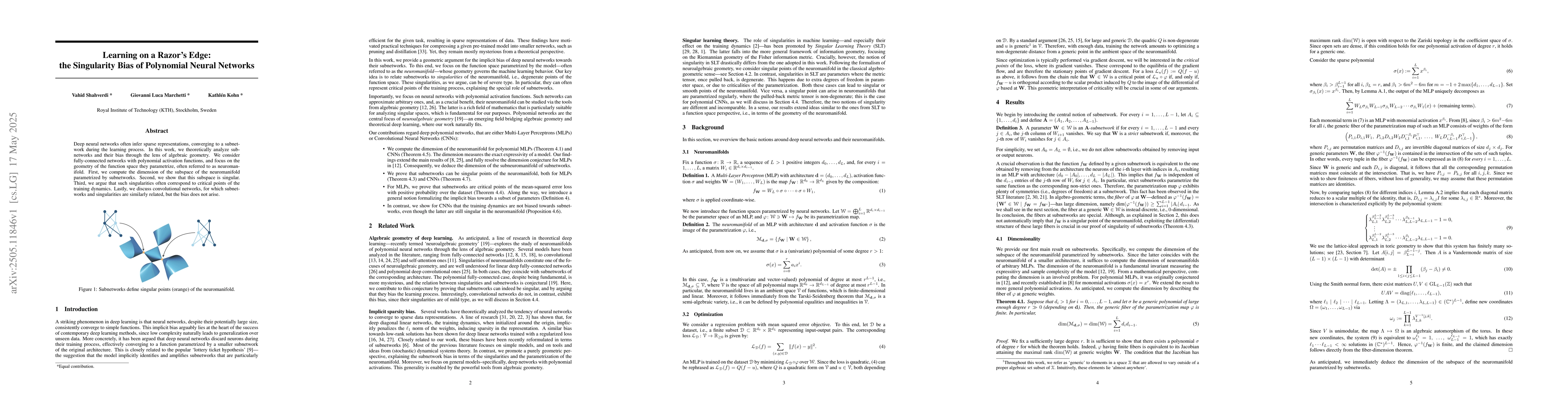 Researchers analyze neural networks using algebraic geometry to show they often converge to a subnetwork, forming a singular subspace that corresponds to critical points of training dynamics.